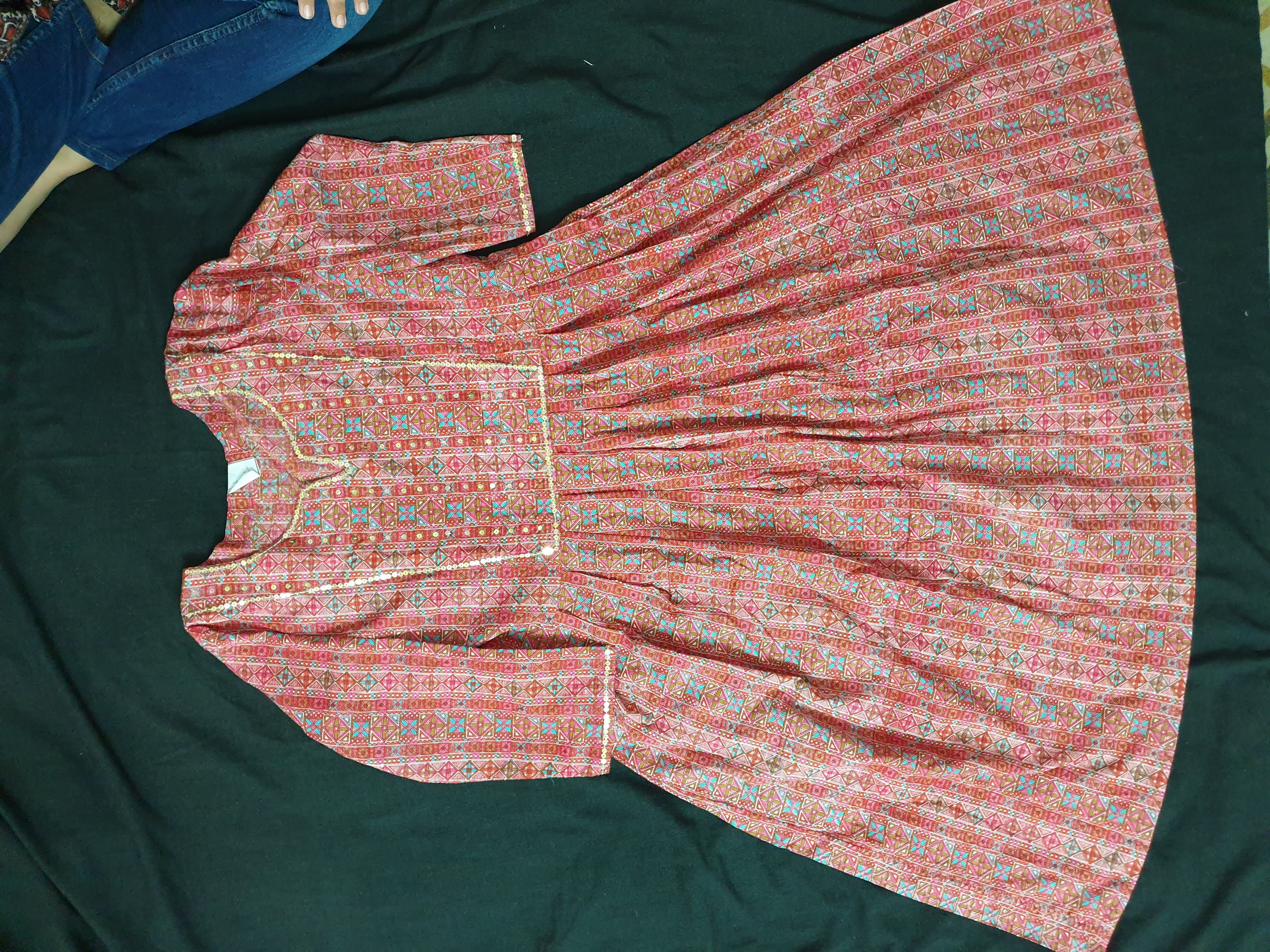 Pink Jaipuri Small Print Kurti with Tikki Work