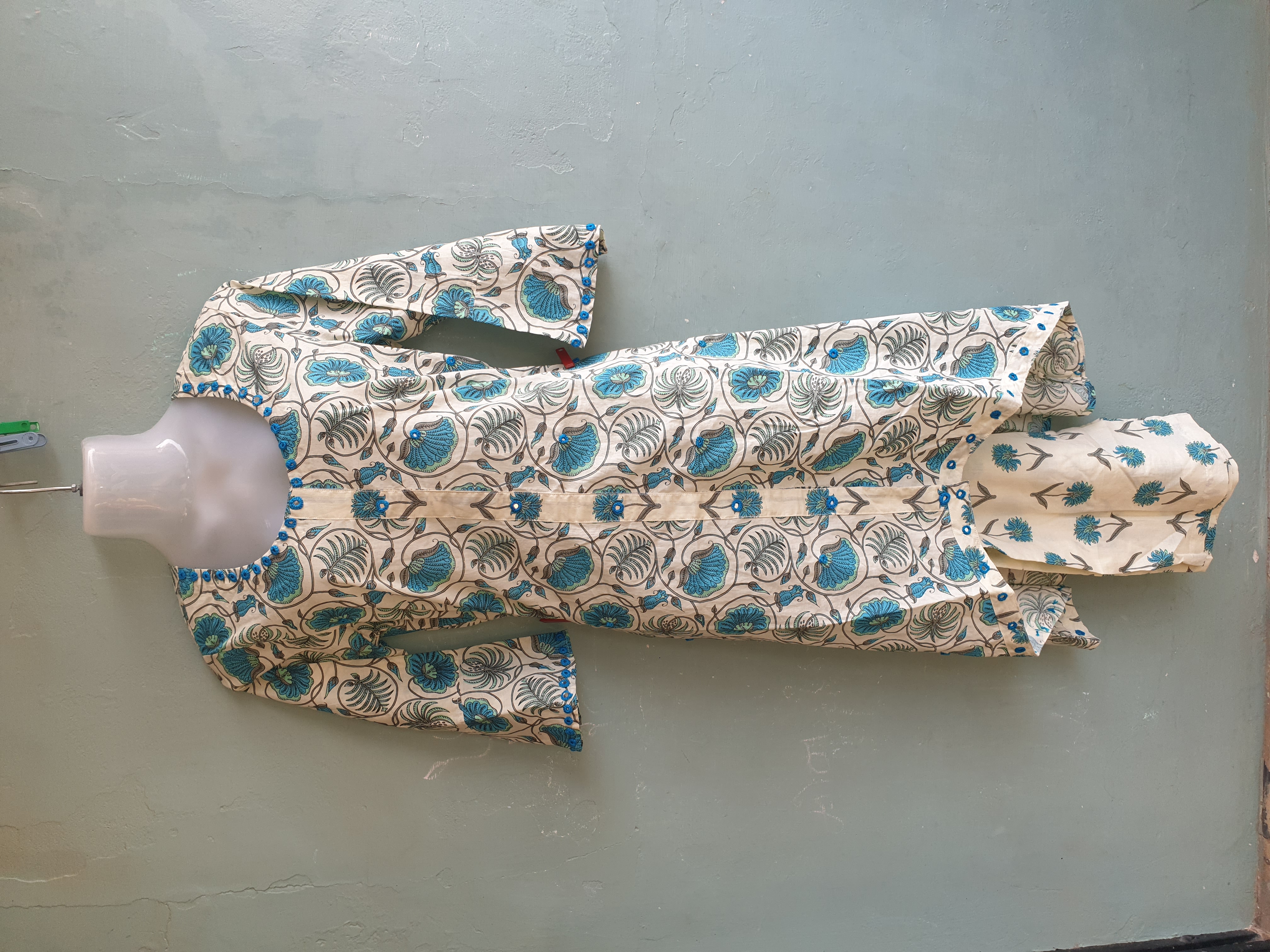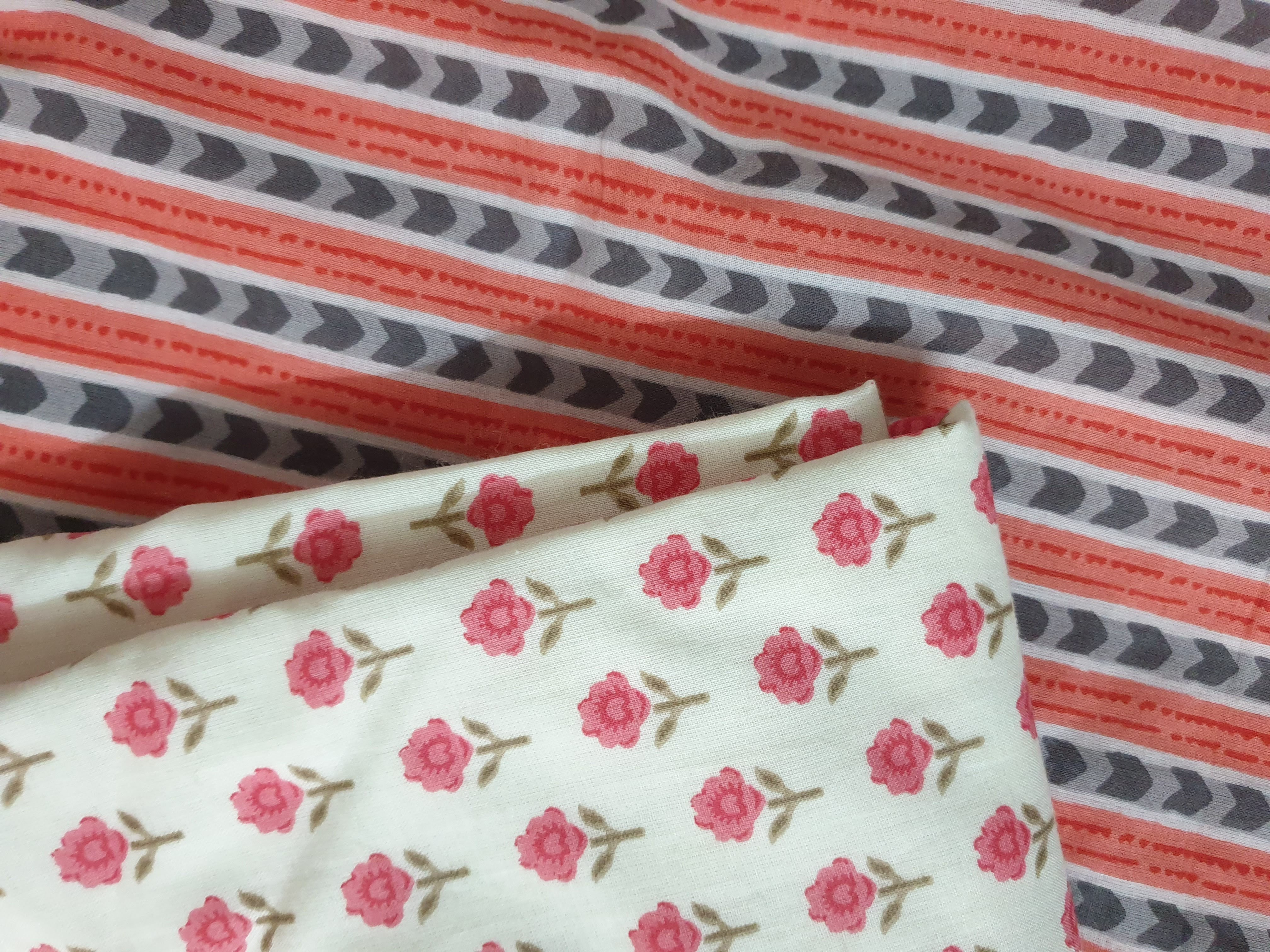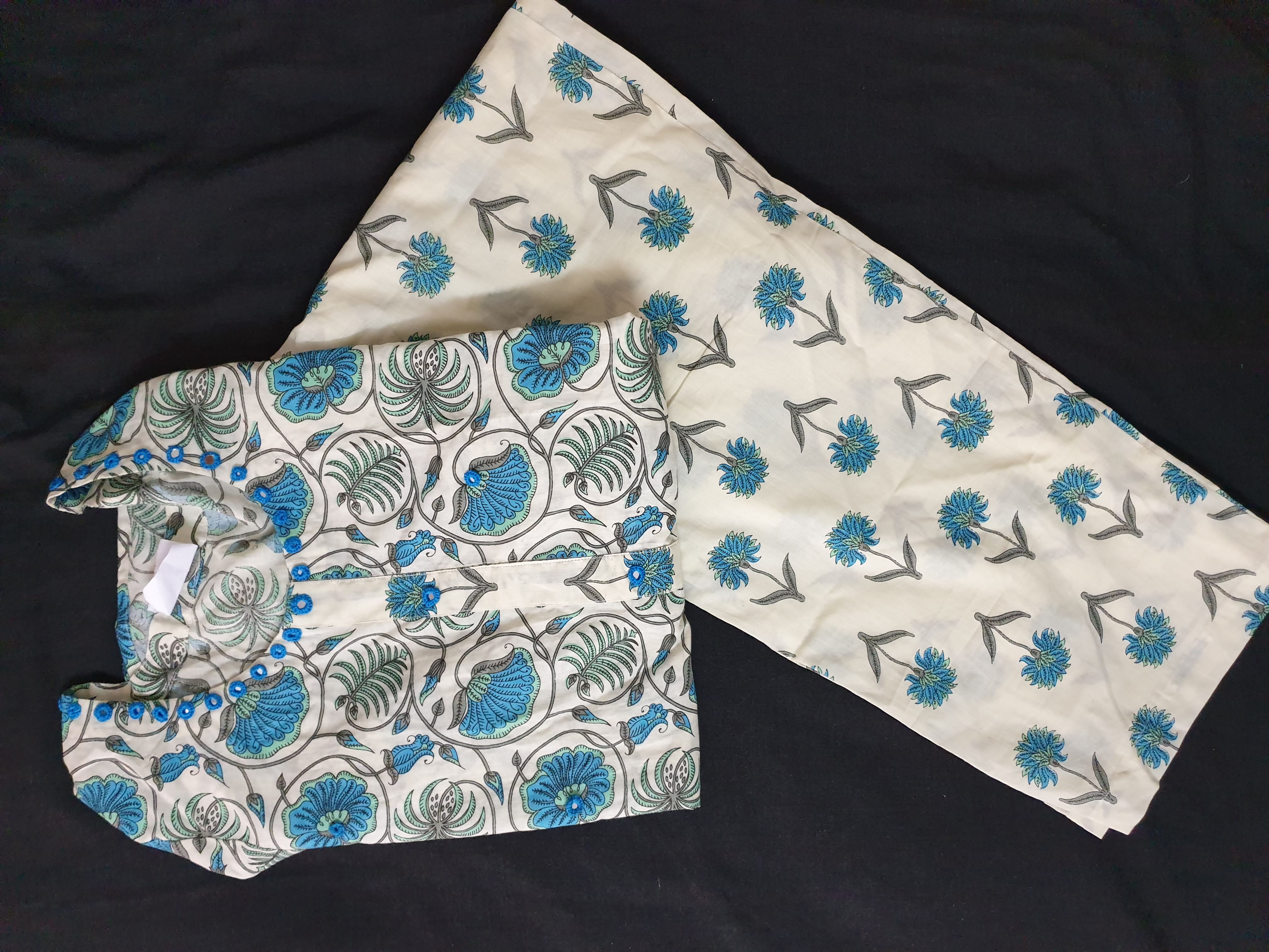 Small Flower Print Cotton Kurti Pant Set with Up and Down Pattern